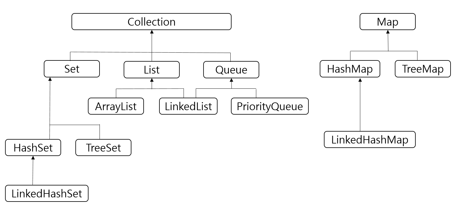 자바에서 List, Set, Queue 는 Collection 이라는 인터페이스를 구현하고 있다. Collection 인터페이스는 java.util 패키지에 선언 되어 있고, 여러개의 객체를 하나의 객체에 담아 처리할때 사용되는 여러 메소드들을 선언해 놓았다.