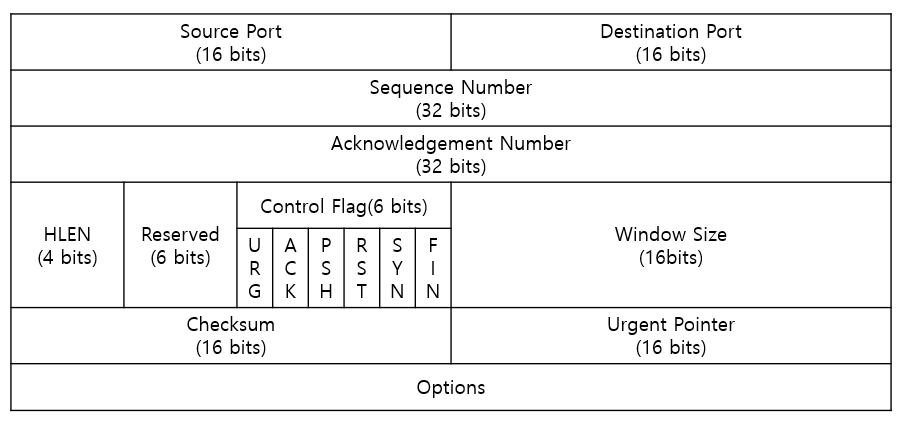 - Window Size : 수신자에서 송신자로 보내는 수신자의 윈도우사이즈. 즉, 버퍼의 여유공간 크기를 의미한다.