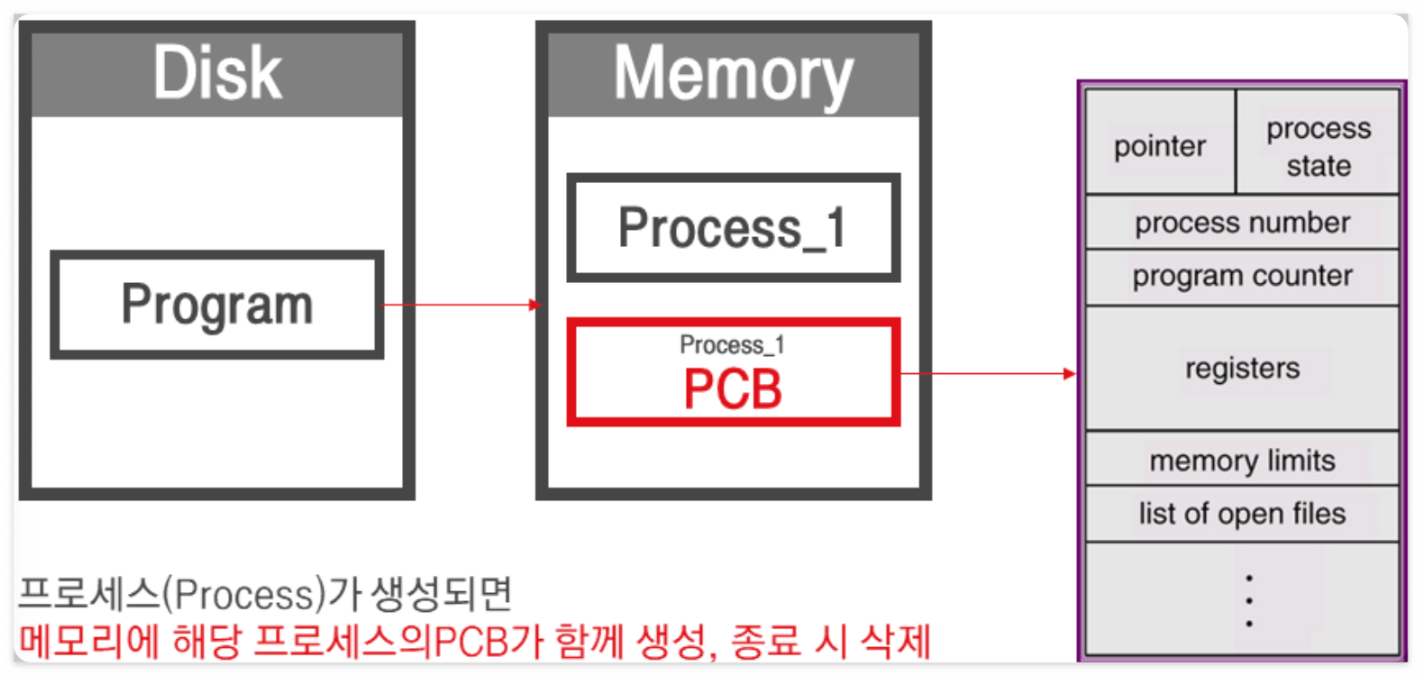 • PCB 는 프로세스 Context switching 할때 기존 프로세스의 상태를 어딘가에 저장해두고 다음작업을 이어서 할수있게 즉, 프로세스 스케줄링을 위해 프로세스에 관한 모든 정보를 저장하는 임시 저장소