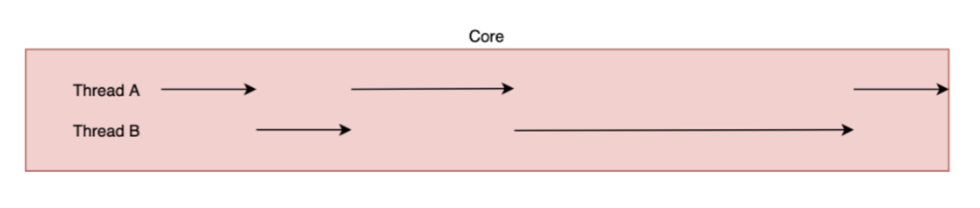 - 1개의 CPU core 가 있고 4개의 테스크가 있다고 가정하면, 프로세스 or 쓰레드를 번결아가면서 조금씩 처리함 으로써 마치 프로그램이 동시에 실행되는 것 처럼 보이는 것이다
