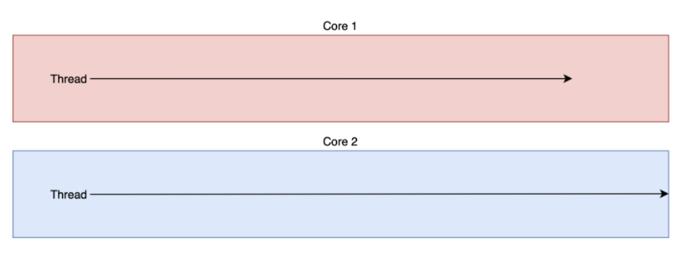 - 병렬성은 직관적으로 명령어를 메모리에서 뽑아 해석하고 실행하는 반도체 유닛인 여러개의 CPU core 에 맞춰 여러개의 프로세스, 쓰레드를 돌려 병렬로 작업들을 동시 수행하는 것을 말한다
