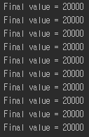 그렇다면 쓰레드 클래스인 ModifyAmountThread의 run() 메소드에서 같은 객체로 연산을 진행했으므로 CommonCalculate 클래스의 amount는 20000로 찍혀야 정상이지만 그렇게 찍히지 않는다 이유가 무엇인가?
