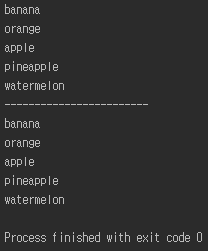 fruits 배열에는 apple, banana, watermelon, pineapple, orange 가 중복되어 존재한다.